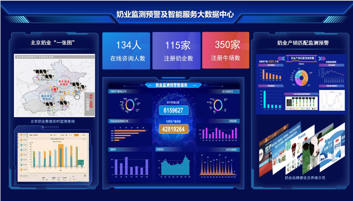在成果推广应用方面,项目选定北京市10个规模化奶牛养殖场作为首批示范应用基地,将全面落地智能服务产品,打造应用标杆。项目组将建立跟踪与实时响应机制,扩大技术覆盖面。会上,项目还发布了奶业监测及预警服务大数据中心平台,通过“北京奶业养殖文化信息汇集展示模块”“北京乳制品品牌宣介模块”等,致力于讲好北京奶牛故事,提振乳品消费信心。