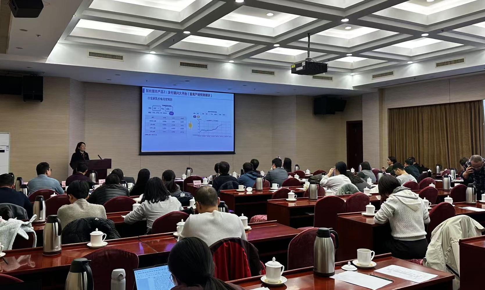 本次会议发布了项目组研发的奶业产销信息预测及智能服务技术成果,开展了专题培训与交流。刘芳介绍了项目总体目标与核心成果。项目聚焦奶业全产业链信息监测与风险预警,旨在通过构建先进的价格预测模型与智能数据服务体系,为生产经营主体科学决策和行业管理部门精准施策提供有力支撑。