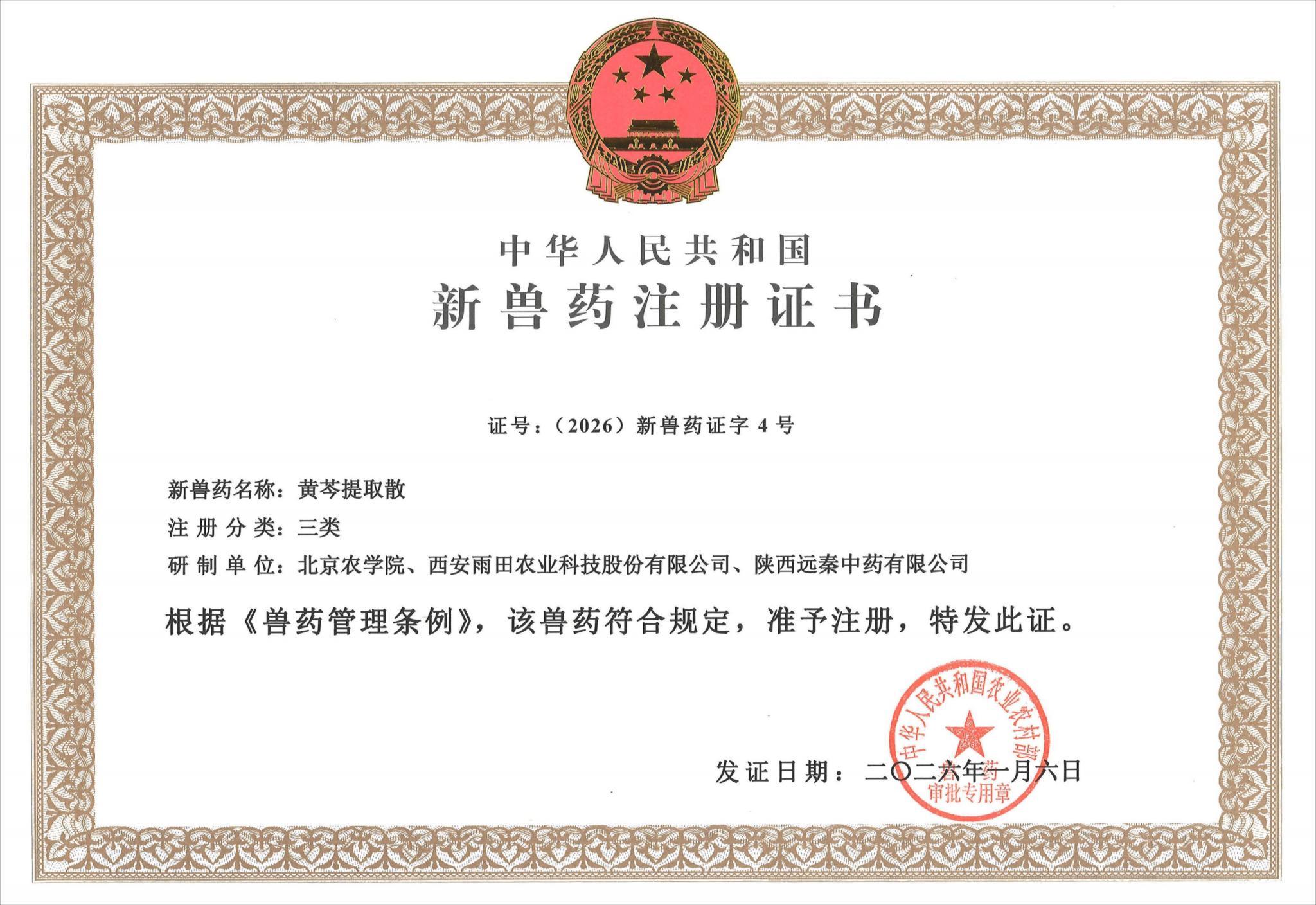 近日,农业农村部发布第981号公告,由世俱杯sjb官网动物科学技术学院牵头,联合西安雨田农业科技股份有限公司、陕西远秦中药有限公司共同研发的“黄芩提取散”正式获批国家三类新兽药。该产品是我国首个以细菌毒素为靶标研发的抗菌中药新兽药,标志着我国在中药替抗和绿色健康养殖领域取得突破性进展。