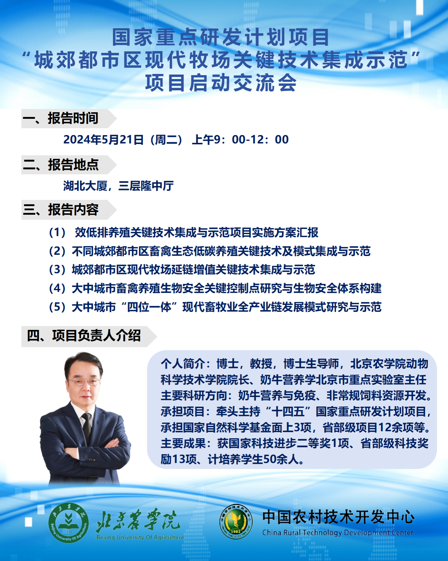 项目介绍:针对城郊都市区畜牧业功能单一、环境资源约束、畜禽产品附加值低、生物安全风险高、三产融合程度低等产业问题,从精准营养、精准环境、精准融合、精准预警与精准示范5个方面开展研究。重点围绕研究畜禽日粮中氮和矿物元素代谢规律及其限量规定,创制“两低一高”饲料配制及精准营养、智慧养殖技术;研究畜禽粪污资源化利用与固氮减排关键技术,明确种养循环的关键技术节点及协同发展模式;研究畜牧产业延链增值关键技术及制约因素,建立城郊都市区畜牧全产业链发展技术标准;研究城郊都市区畜禽养殖生物安全风险因子及关键控制节点,创建基于畜禽基础数据和AI信息技术的生物安全预警新体系;集成示范以全产业链为基础的城郊都市区功能多样、高效生态、产业融合、城乡一体的可复制可推广的现代牧场养殖技术及发展模式,建立示范点12个,为城郊都市区现代牧场规模化高效健康养殖提供全链条解决方案,显著提升现代牧场的规模化、标准化、智能化和现代化水平,促进城郊都市区畜牧业全链条增值和品牌化发展转型,实现养殖效益和质量双提升,为大中城市畜产品保供和居民生产生活需求提供技术支撑。