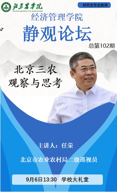 报告专家简介:任荣,现任北京市农业农村局二级巡视员,协助主管局长负责安全稳定。曾任原北京市农村工作委员会协调联络处处长、经济贸易处处长、农产品流通处处长、督查处处长、北京市农业农村局农村社会事业等工作。先后负责北京农村休闲农业与乡村旅游、农产品流通、低收入农户帮扶、农民增收、乡村体育等社会事业工作。对农业品牌建设、创意农业、休闲农业有兴趣。提出《农产品品牌核心内涵》、《农产品品牌金字塔架构》等观点,先后发表《创意农业探索与实践》等专著,在农民日报、新华财经等平台发表《十年畅想----北京农业风光无限》、《休闲农业的“四化”建设》、《裴书记和他的“左邻右舍”》、《休闲农业发展需要注意的几个问题》、《四好成就乡村剧变》、《乡村振兴需要花好三笔钱》等文章。曾任世俱杯sjb官网经济管理学院和北京农业职业学院客座教授。