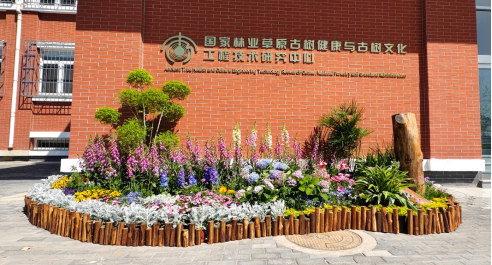 第一组花镜的主题为“林花逸韵”。该花境设计位于“国家林业草原古树健康与古树文化工程技术研究中心”的入口处,旨在通过自然元素的运用,展示该研究中心对生态保护和环境美化的重视。花境采用曲线设计,象征着灵活和谐与统一,同时也便于人们从各个角度观赏。花卉的选择和布局经过精心设计,以确保在不同季节都能保持花坛的美观。花境设置了多种花卉,以蓝紫粉三种色调为主。花境中包括飞燕草、蓝盆花、香雪球等,形成了色彩斑斓、层次分明的视觉效果。这种多样性不仅增加了花坛的观赏性,还体现了生物多样性的重要性。