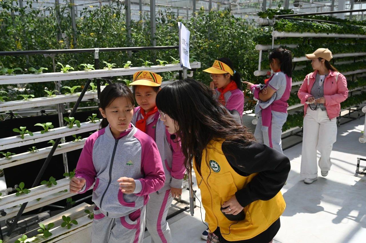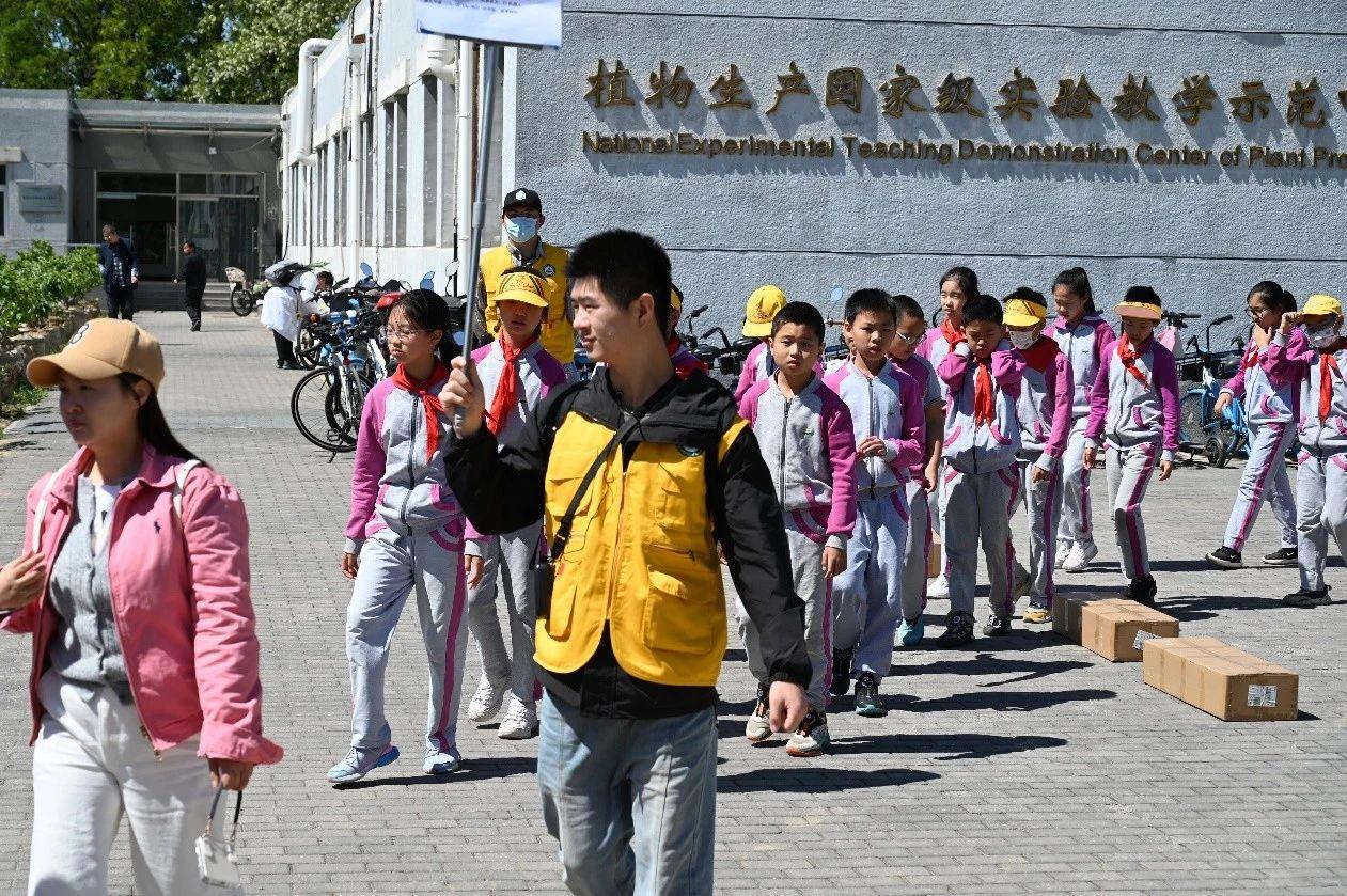 4月底至5月初,北京师范大学昌平附属学校、北京市新府学外国语学校、北京市第二十中学附属实验学校等4所学校,1100余名中小学生到世俱杯sjb官网开展社会实践研学活动。30余名身着统一“志愿黄”马甲的北农志愿者,以专业素养和热情服务,引导青少年开启了一场场融合传统农耕与现代科技的实践之旅。