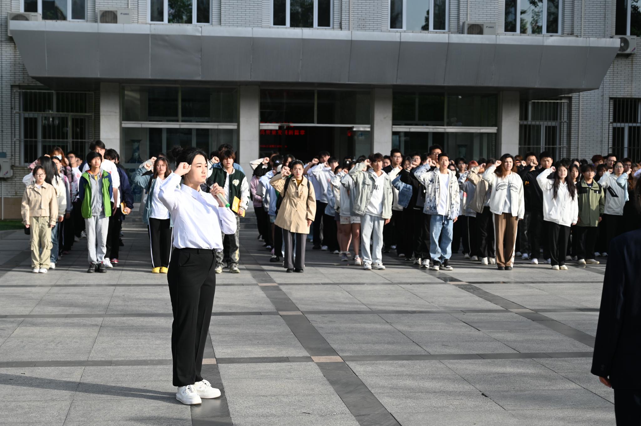 活动现场,生资学子们以"白色上衣+深色下装"的整齐着装勾勒出蓬勃朝气,胸前团徽在朝阳下熠熠生辉。学院融媒体中心用镜头定格下动人瞬间:当国旗升至顶端时湿润的眼眶,宣誓时绷紧的指节,晨风中翻飞的团旗与青年们坚毅的面庞交相辉映。