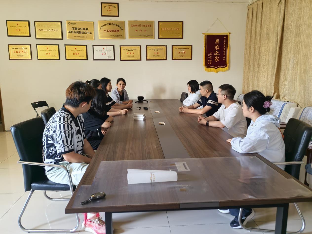 为深入贯彻落实习近平总书记关于教育的重要论述和五四青年节重要回信精神,深化实践育人和乡村振兴“大思政课”工作成效,引导和帮助广大北农青年在社会课堂中受教育、长才干、作贡献,厚植爱农情怀,练就兴农本领,在乡村振兴的大舞台上建功立业。2025年7月6日,资源与环境系研究生党支部书记华玲玲带领三支暑期社会实践团赴北京昌平军都山红苹果合作社开展暑期社会实践服务对接,并调研了合作社在学生实习、就业等方面的需求。军都山红苹果合作社负责人张增阔接待了实践团师生代表。