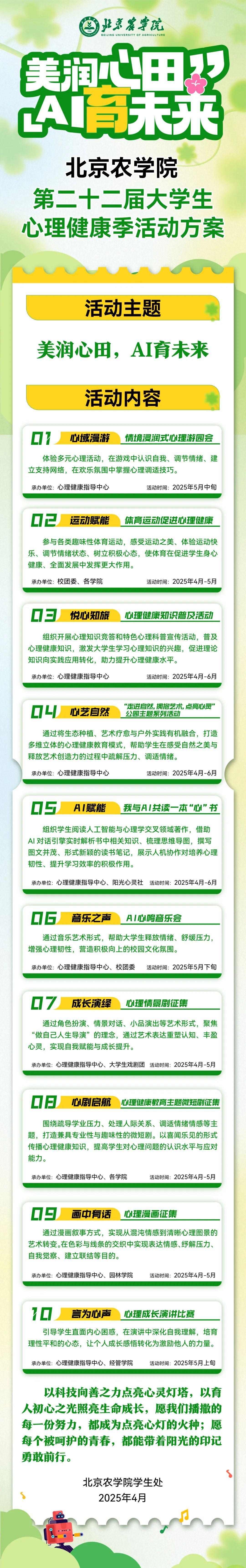 一图读懂|世俱杯sjb官网“美润心田 AI育未来”第二十二届大学生心理健康季活动方案