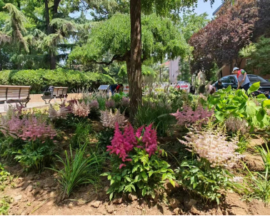 所选植物耐阴耐寒、抗病虫害,像三七景天、马蔺可粗放管理,落新妇喜阴适配被树遮挡的一些地方,这些都可减少浇灌与修剪频次。让植物自然生长,通过高低错落的品种搭配,形成自循环的生态景观,既降低养护成本,又让社区居民收获微花园的自然之美。