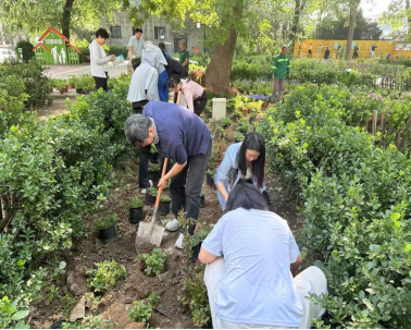 5月13日,东城区建国门街道东总布社区贡院六号微花园开始施工建设。由鲍梦涵老师带队,与10余名社区工作人员及社区居民共同参与翻土、种植等花园建设工作。