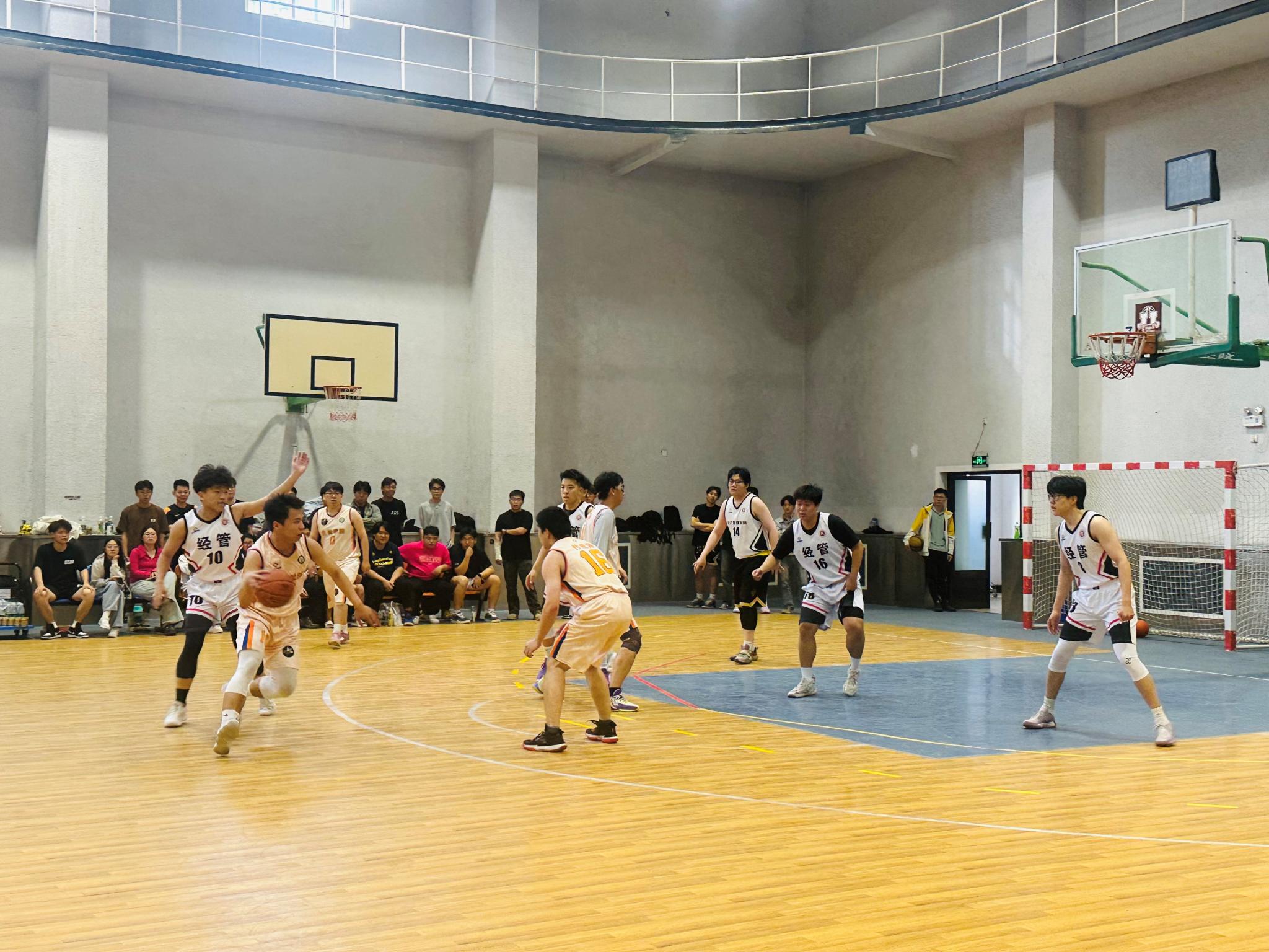 赛场上,生资学院篮球队的队员们个个斗志昂扬、活力四射。小组赛阶段,他们稳扎稳打,每一场比赛都全力以赴,凭借扎实的基本功和默契的团队配合,面对实力强劲的对手,队员们毫不退缩,在攻防两端都展现出了极高的水准。进攻时,他们灵活跑位、巧妙传球,一次次撕开对手防线,完成精彩得分;防守时,他们紧密协作、积极拼抢,让对手难以找到突破口。