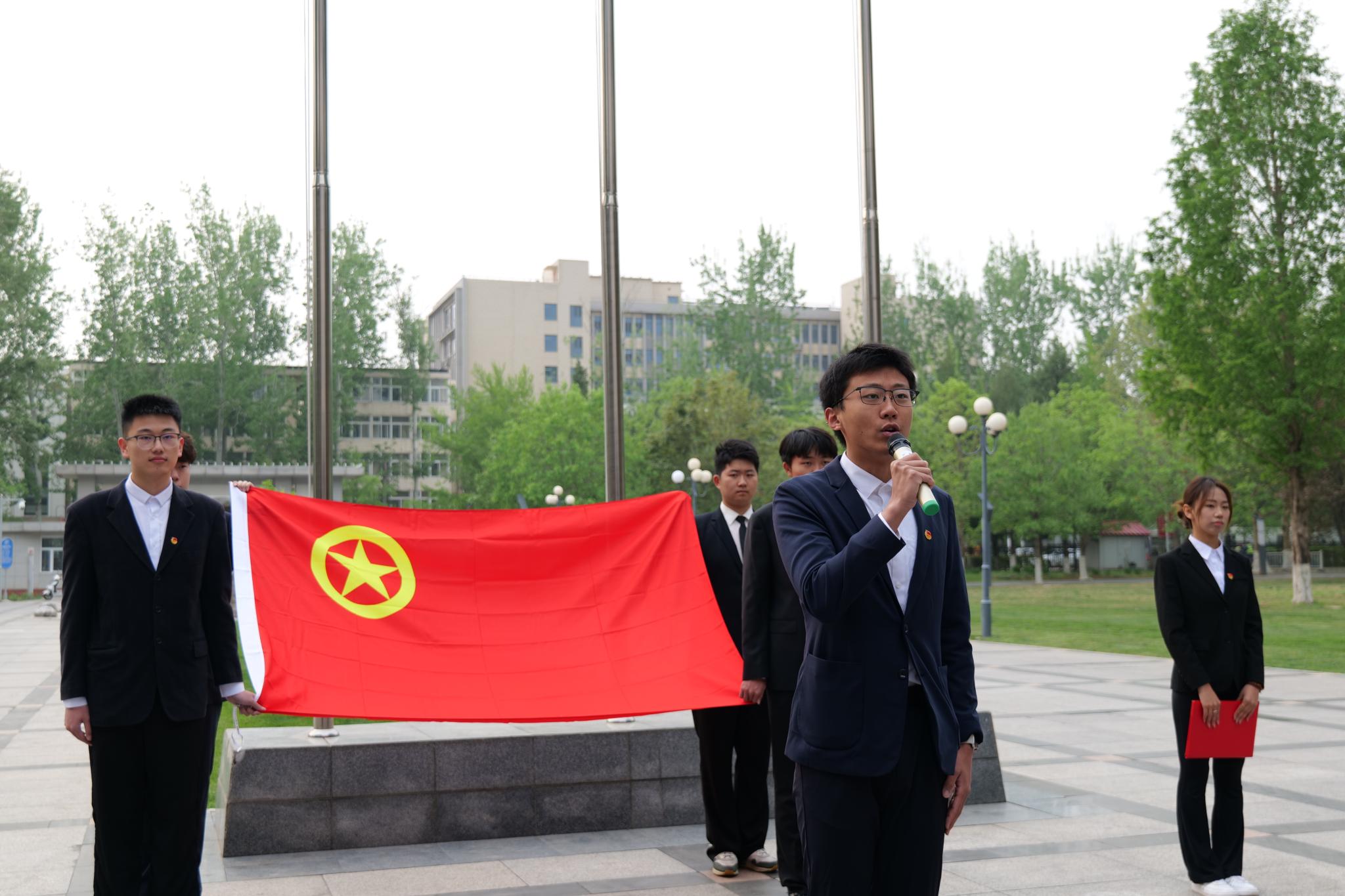 为贯彻落实习近平总书记关于青年工作的重要思想,切实加强共青团员政治认同,引导广大团员青年传承红色基因、筑牢信仰根基。4月21日上午7点,文法与城乡发展学院团委在行政楼前举行了“红旗映初心 誓词砺使命”主题团日活动,校团委书记张卿、文发学院学生工作负责人周旭平和全体辅导员、院团委学生骨干、2024年新发展团员、团员代表共同参加。