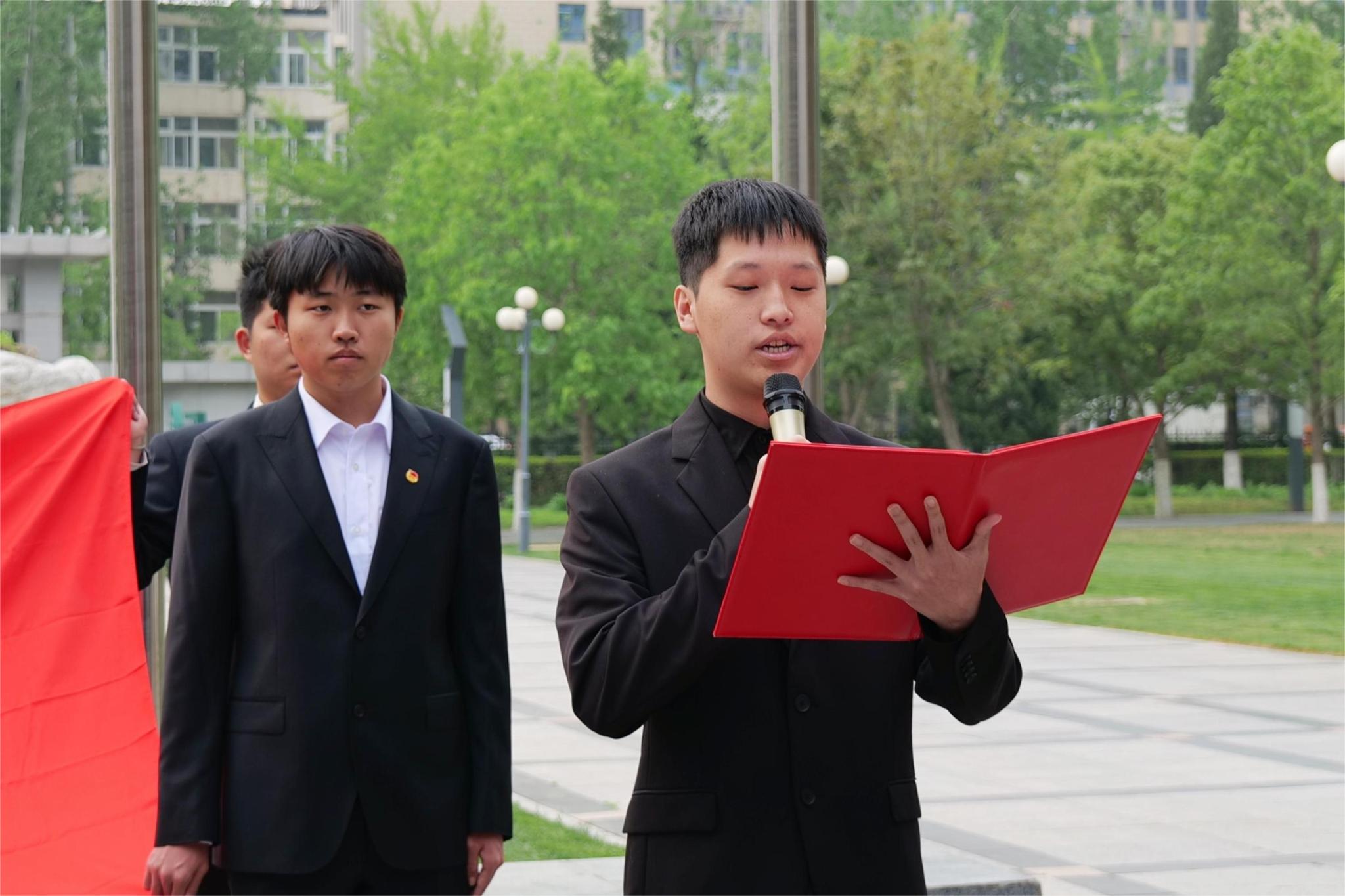 优秀团员代表朱世杰带领全体团员面向团旗,庄严宣誓,誓言铿锵有力,表达了团员们对共青团的无限向往和坚定信念。