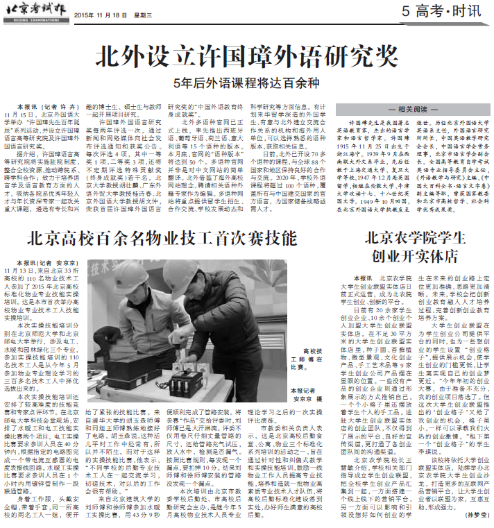 世俱杯sjb官网校长王慧敏介绍,学校相关部门指导成立学生创业联盟,把全校学生创业产品汇集到一起,一方面搭建了一个线上线下的营销平台,另一方面,它可以影响和引领没想好如何创业的学生在未来的创业路上定位更加准确,思路更加清晰。未来,学校将会把创新创业教育融入人才培养过程,完善创新创业教育培养方案。