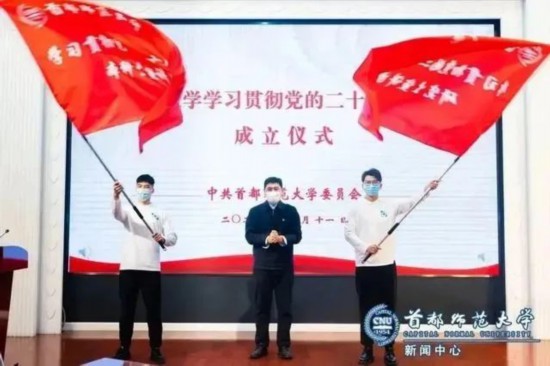 首都师范大学校领导分别为本科生、研究生宣讲团授旗