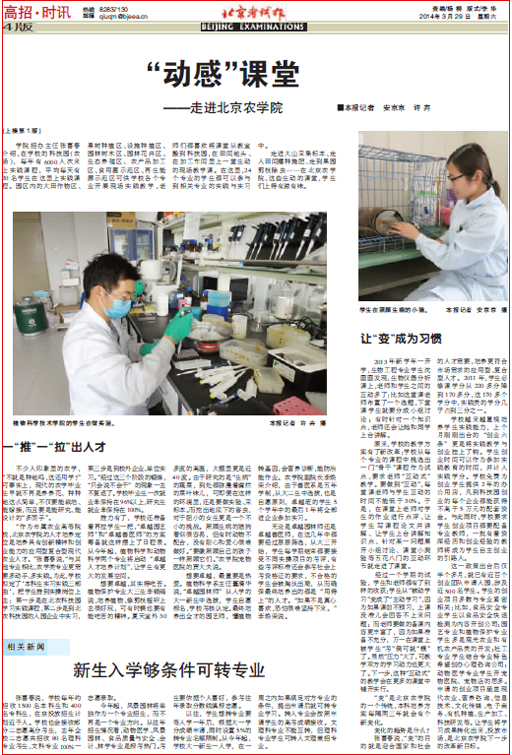 “作为市属农业高等院校,世俱杯sjb官网的人才培养定位是培养具有创新精神和创业能力的应用型复合型现代农业人才。”张喜春说,“与其他专业相比,农学类专业更需要多动手、多实践。为此,学校拟定了‘本科生实习实践三部曲’,把学生推到实操岗位上去:第一步是在北农科技园学习实践课程,第二步是到北农科技园的入园企业中实习,第三步是到校外企业、单位实习。”经过这三个阶段的锻炼,“只会说不会干”的现象一去不复返了。学校毕业生一次就业率保持在96%以上,研究生就业率保持在100%。