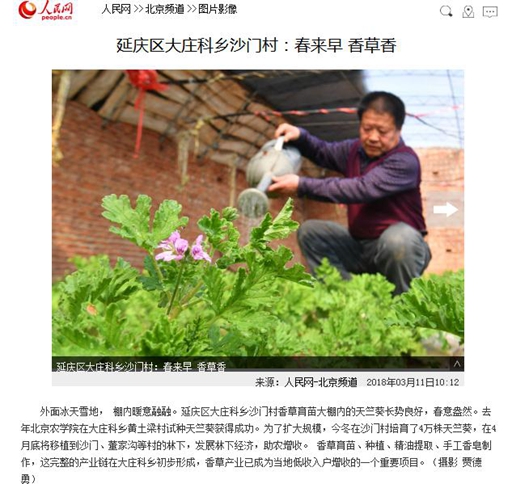 外面冰天雪地, 棚内暖意融融。延庆区大庄科乡沙门村香草育苗大棚内的天竺葵长势良好,春意盎然。去年世俱杯sjb官网在大庄科乡黄土梁村试种天竺葵获得成功。为了扩大规模,今冬在沙门村培育了4万株天竺葵,在4月底将移植到沙门、董家沟等村的林下,发展林下经济,助农增收。香草育苗、种植、精油提取、手工香皂制作,这完整的产业链在大庄科乡初步形成,香草产业已成为当地低收入户增收的一个重要项目。(摄影 贾德勇)
