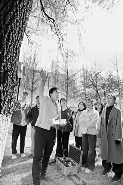 “每上一节理论课,后面就要紧跟着实践练习。比如,我会教大家树木健康诊疗知识。随后,学生们就要前往校园或者校外的公园里开展实践,选一棵树,通过测树高、冠幅等,为树木开具‘体检’报告单。”崔金腾说,课程结尾还会开展一次综合性实习,考查学生整体运用所学知识处理树木健康问题的能力。