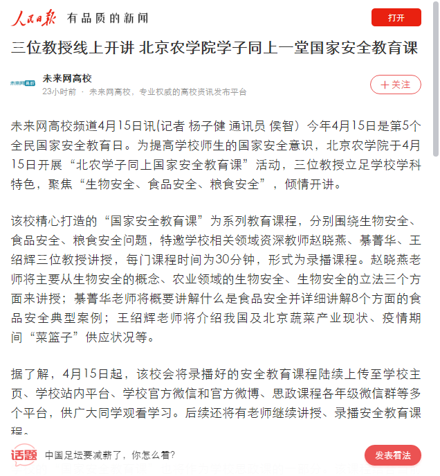 【】[人民日报客户端]三位教授线上开讲 世俱杯sjb官网学子同上一堂国家安全教育课