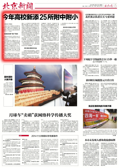 该项目启动后,中国农业大学、北京科技大学等23所在京高校分别与海淀、朝阳、昌平、丰台4个区教委签署合作协议,共同建设39所附中附小。其中,除原有的14所高校附中附小外,以高校名义新创办的附中附小共有25所。截至目前,87%的附中附小已与有关高校制定并签署了合作方案,并开展了实质性合作,近5万名中小学生因此受益。