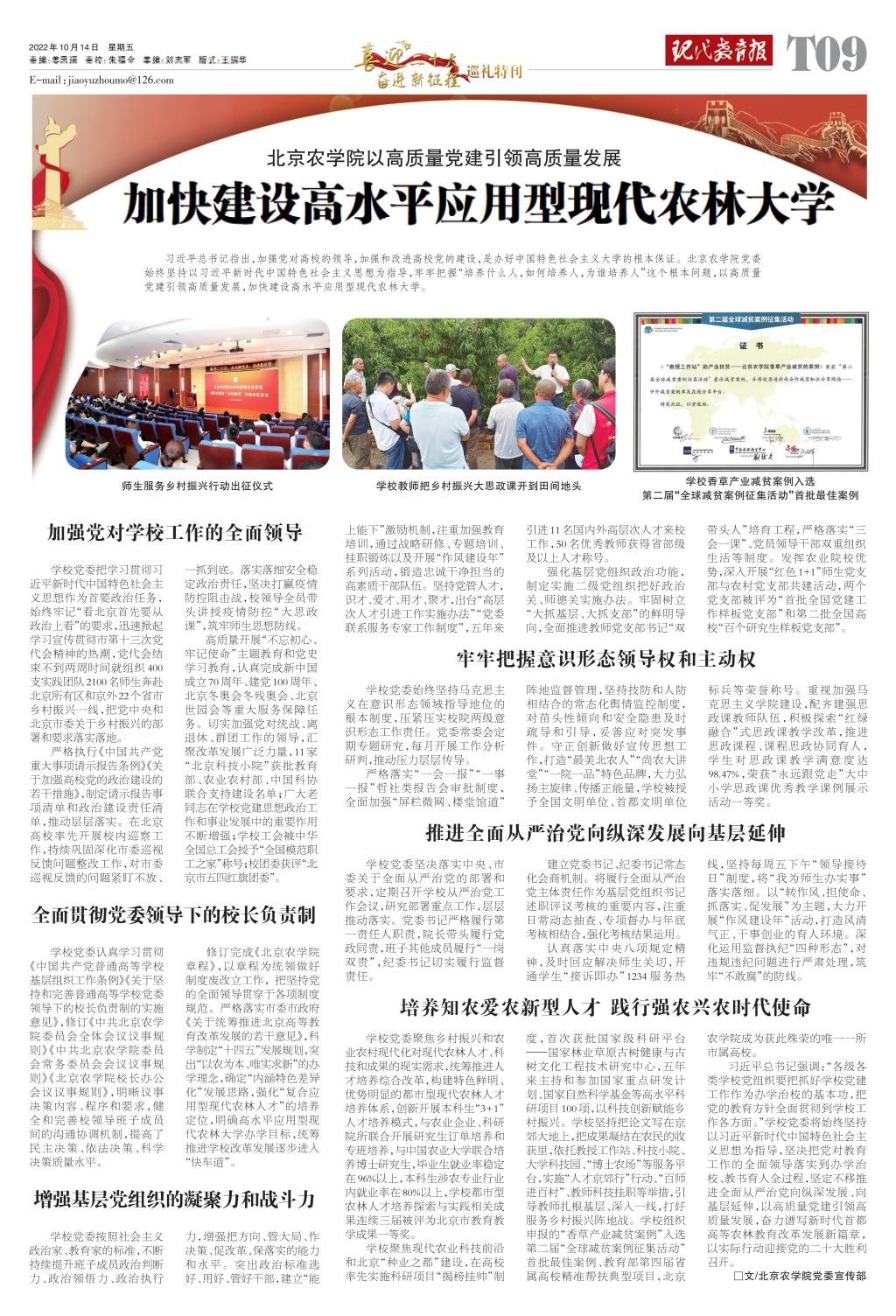 【】【现代教育报·整版报道】喜迎二十大 奋进新征程 世俱杯sjb官网以高质量党建引领高质量发展 加快建设高水平应用型现代农林大学