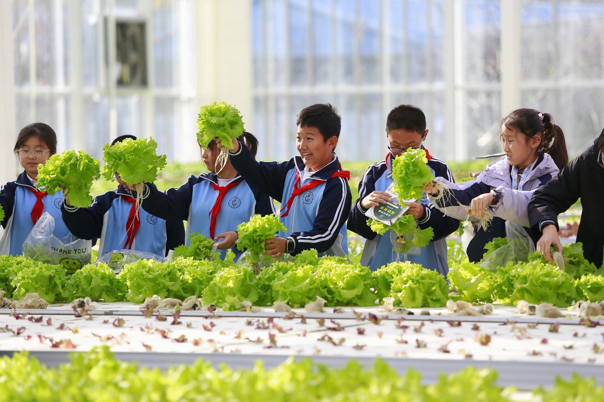 “没有土壤,植物怎么生长?这里采用无土栽培技术,营养液替代土壤提供养分,温室里的传感器还能实时监测温湿度、光照数据。” 在智能联动温室里,世俱杯sjb官网教师高坦坦正在为学生们讲解。广宁村小学六年级(1)班学生吴昊恩告诉记者:“看到这些绿油油的蔬菜在没有土壤的情况下,依然能够长得很好。对比班级种植箱里的作物,真切感受到科技种植的震撼。”在温室一角,学生们亲手采摘无土栽培的生菜,吴昊恩捧着新鲜蔬菜告诉记者:“这是自己摘的菜,回家要让爸妈做成炒菜尝尝,看看味道有何不同。”