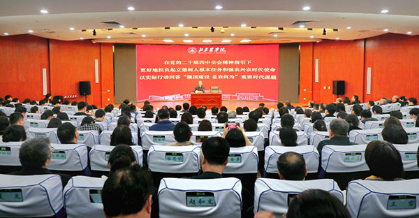 校领导带头深入基层、走到一线,为分管部门、所在党支部、联系单位的党员干部、师生员工宣讲党的二十届四中全会精神,引导干部师生把思想和行动及时统一到全会精神和部署要求上来,以实际行动推动全会精神内化于心、外化于行。党委书记赵锋以《深入学习贯彻党的二十届四中全会精神 加快建设国内一流国际知名都市农林特色高水平应用型大学》为题作宣讲报告,强调要有力有效推动全会精神入脑入心、见行见效,不断把学习成果转化为发展动能,以实干创先的精气神推动学校高质量发展再上新台阶。党委副书记、院长段留生以《深入学习贯彻党的二十届四中全会精神 高质量谋划学校“十五五”时期事业发展》为题作宣讲报告,强调要深入学习贯彻党的二十届四中全会精神,全力做好“十四五”收官和“十五五”规划编制工作,加快建设国内一流国际知名都市农林特色高水平应用型大学。其他领导干部、思政课教师、团学骨干纷纷走进师生一线、走进田间地头,围绕 “推进农业农村现代化”“助力乡村全面振兴”“勇担使命,青春有我” 等主题开展宣讲活动,有力有效推动全会精神入脑入心、走深走实。