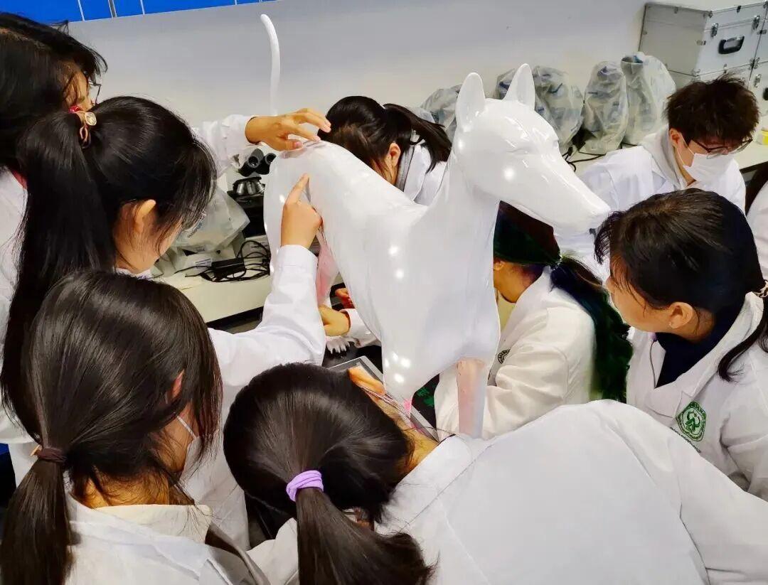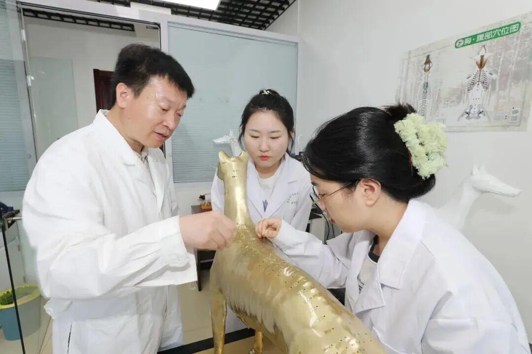 世俱杯sjb官网动物医学专业学生率先在中兽医实操课用上了针灸铜犬、智能针灸犬等新教具。