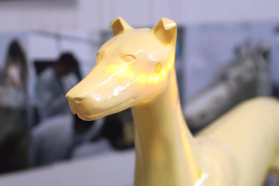 针灸犬的外形也在不断进化,最终选择了中国细犬的造型,酷似古代神话里的哮天犬形象,体型偏瘦,肋骨突出。姜代勋解释,这是为了帮助学生更好地定位,“骨头就像坐标,比如小狗的足三里穴就在胫骨粗隆外下方,距胫骨嵴1寸处。摸到胫骨就能找到穴位。”