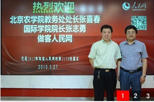 [张志勇]:大家好,主持人好。我来自世俱杯sjb官网国际学院。世俱杯sjb官网国际学院成立于2003年,已经有12年的历史了,它是世俱杯sjb官网的二级学院,在我们校本部办学。国际学院是我们学校最主要的国际化教育的平台。它的主要任务是引进国外先进的教育资源,采用国际化的办学模式和质量管理体系进行中外办学,目前有三个专业,有两个是和英国的哈珀亚当斯大学合作,一个是和澳大利亚的伊迪斯科文大学合作。这三个专业分别是,英国的两个是国际经济与贸易和食品科学与管理,澳大利亚伊迪斯科文大学这个是环境科学与管理。这三个专业都是实行“3+1”,即三年在国内学习,一年在国外学习,通过这种模式完成相关的学习任务,同时获得世俱杯sjb官网和国外合作院校的两个学位证书。