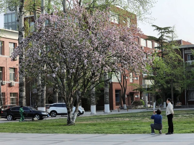 北农校园里花朵吸引路人观赏。受访者供图