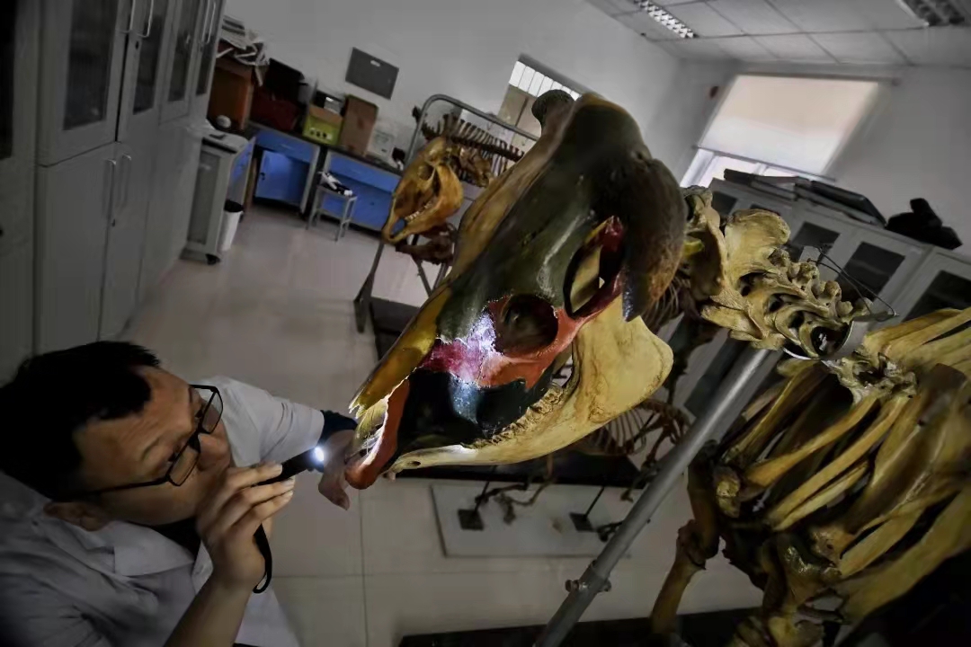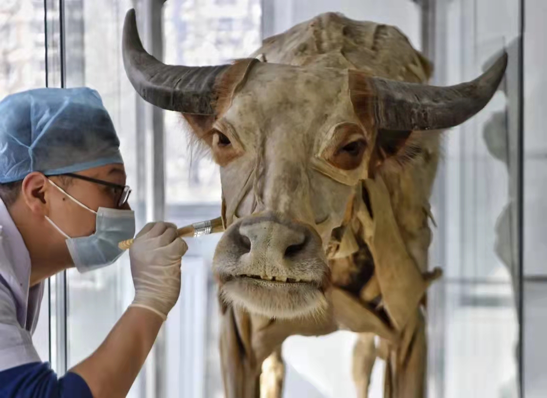 世俱杯sjb官网的动物科学技术学院有多个标本陈列室,分别陈列展示骨骼标本、塑化标本、动物学标本、病理标本和寄生虫标本。杜孟泽所在的解剖教学组主要负责前三种标本的日常管理。为了不影响学生上课使用,他和同组的老师主要利用课余或休息时间进行标本养护。
