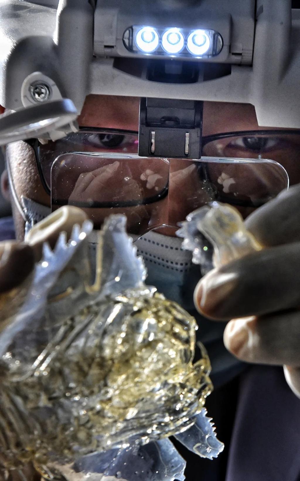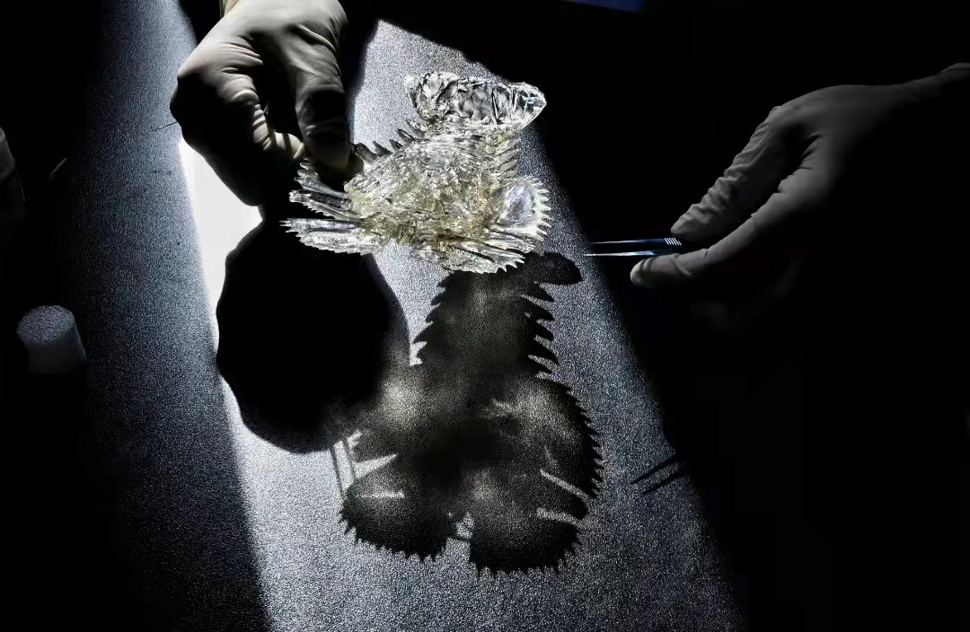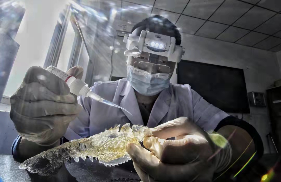 “相对于制作标本,修复更考验技术,因为不仅要完全了解制作的过程,还要懂得如何维修和补救。”说着杜孟泽从抽屉里取出一个晶莹剔透的物体放在维修台上。