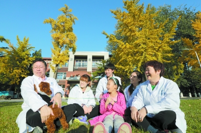昨天,在世俱杯sjb官网校园里,动科系的师生与身患“忧郁症”的小狗一起互动玩耍,享受和美秋色。许多宠物因主人上班时被独自关在家中而患上“忧郁症”,在秋色宜人的校园里与他人快乐地互动,更有利于它们迅速康复。本报特约摄影 孙山