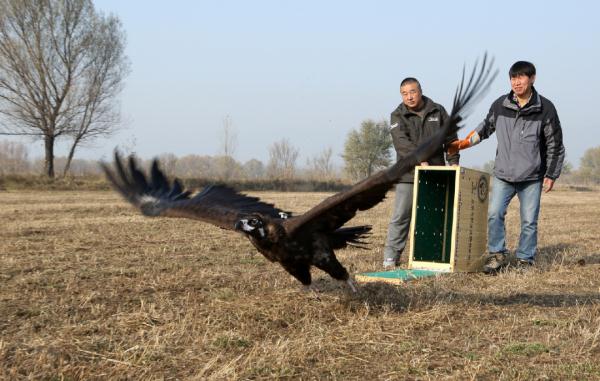 一只秃鹫接受北京市野生动物救护中心的救助后,被成功放归野外(何建勇/摄)