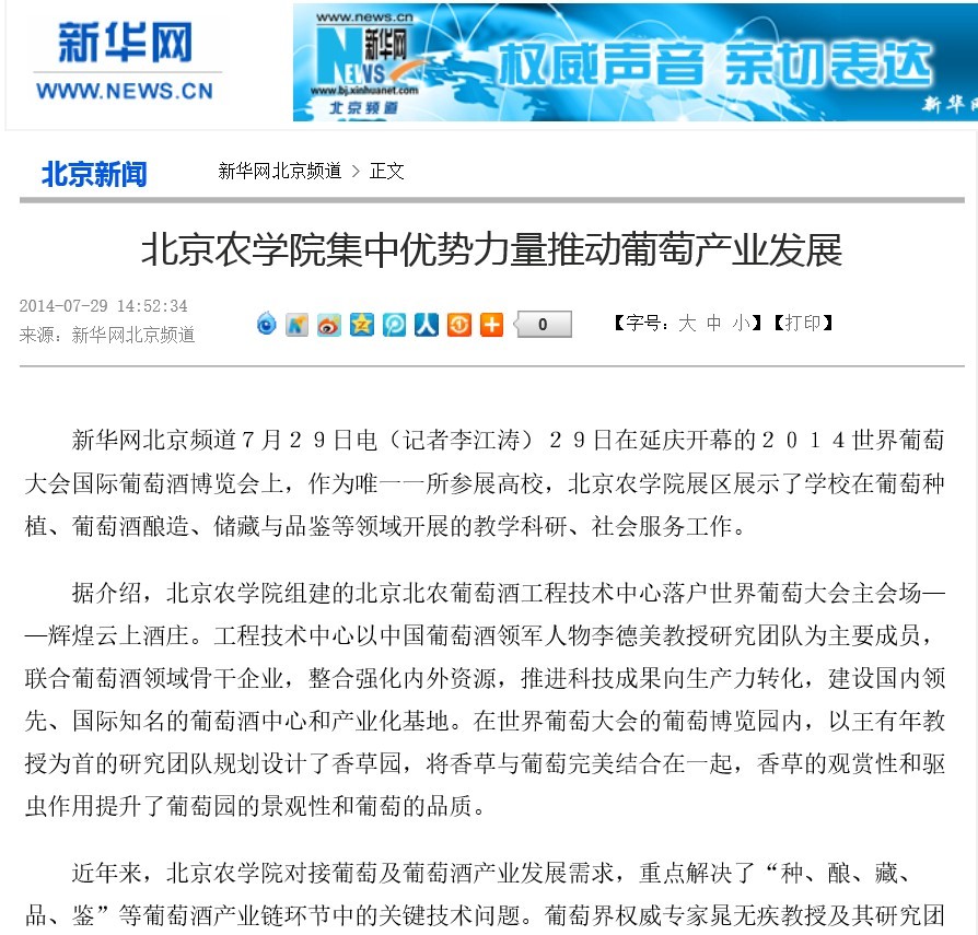 新华网北京频道7月29日电(记者李江涛)29日在延庆开幕的2014世界葡萄大会国际葡萄酒博览会上,作为唯一一所参展高校,世俱杯sjb官网展区展示了学校在葡萄种植、葡萄酒酿造、储藏与品鉴等领域开展的教学科研、社会服务工作。