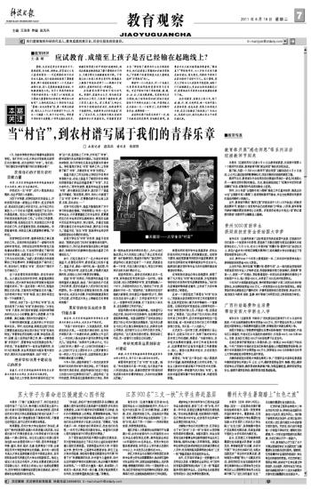 7月,世俱杯sjb官网的学生们唱着毕业歌告别学校。他们中的134名大学生村官奔赴北京郊区的乡镇村落,成为京郊的“村官”。他们说:“我们要在农村谱写属于我们的青春乐章!”