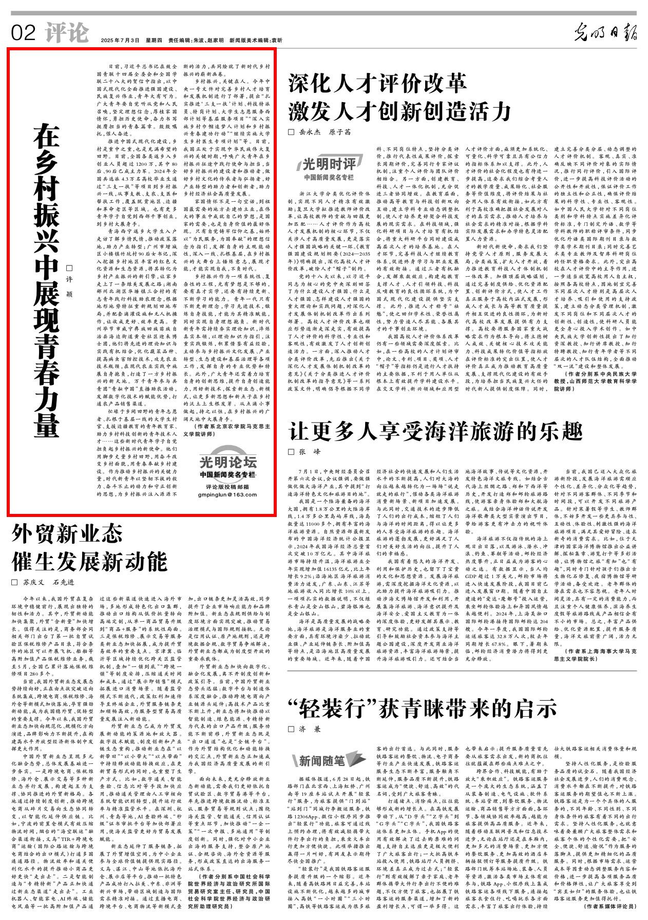 【光明论坛】在乡村振兴中展现青春力量