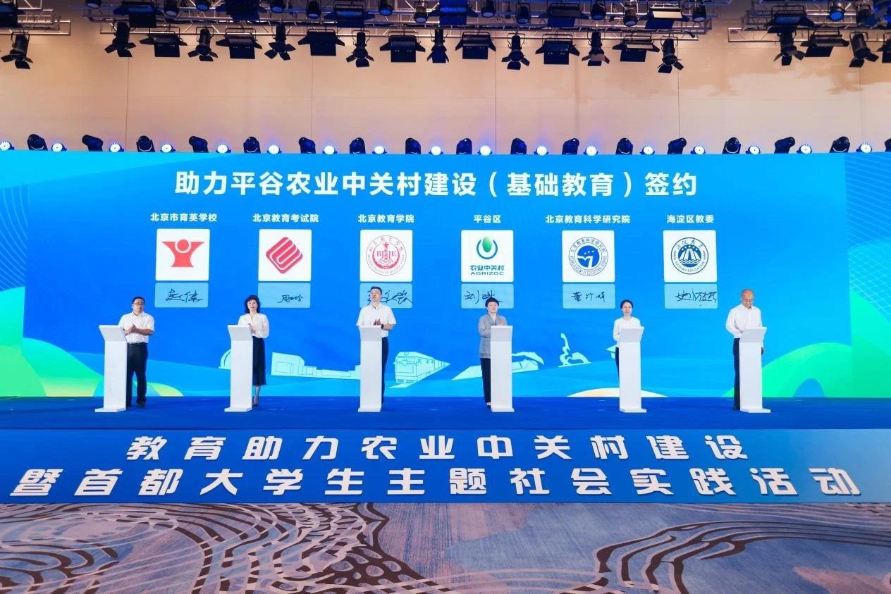 近日,教育助力农业中关村建设暨首都大学生主题社会实践活动启动仪式在平谷区举办。会上,清华大学、北京航空航天大学、中国农业大学等11所平谷区战略合作高校为平谷农业中关村建设加油助力。北京教育学院、北京教育科学研究院、北京教育考试院、北京市海淀区教育委员会、北京市育英学校5家单位与平谷区开展基础教育合作。未来,北京教育系统将充分依托专业特色和人才力量优势,汇聚相关资源,进一步深化与平谷区合作,为农业中关村建设和平谷区打造农业产教融合新高地提供有力支撑。