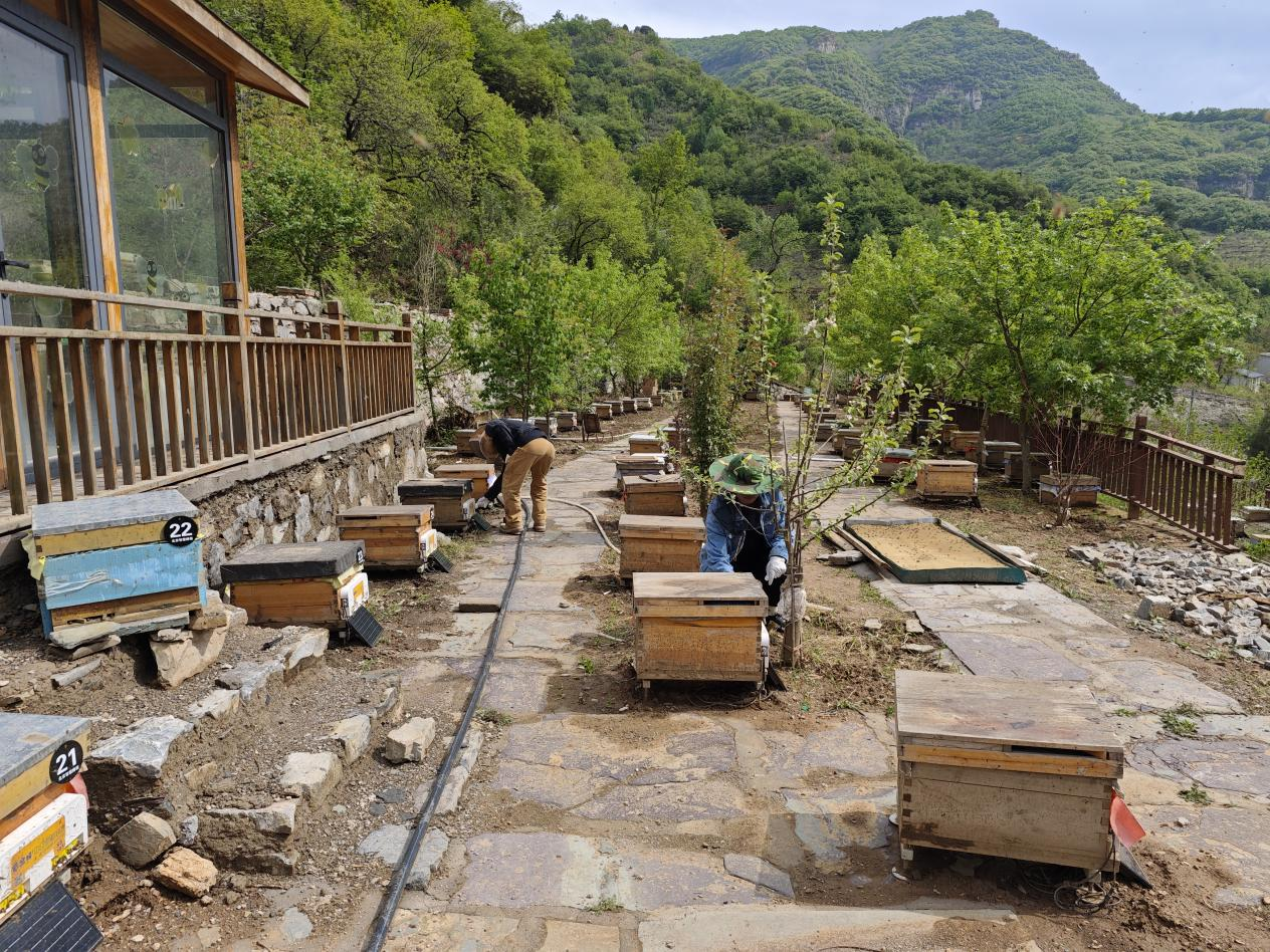 五一期间,正值中华蜂繁育的关键时期,北农师生驻守在蒲洼乡科技小院,推动中华蜂良种繁育基地建设与示范推广,包括蜂种选育、蜜源植物种植、智能蜂箱数据模型优化等工作。