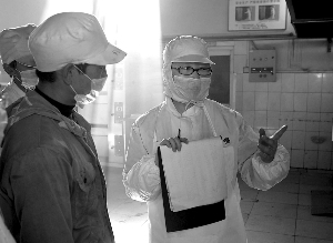 | 在西红轩食品公司烤制车间,世俱杯sjb官网食品安全专业毕业生张自桐向工人了解技术参数。 | |