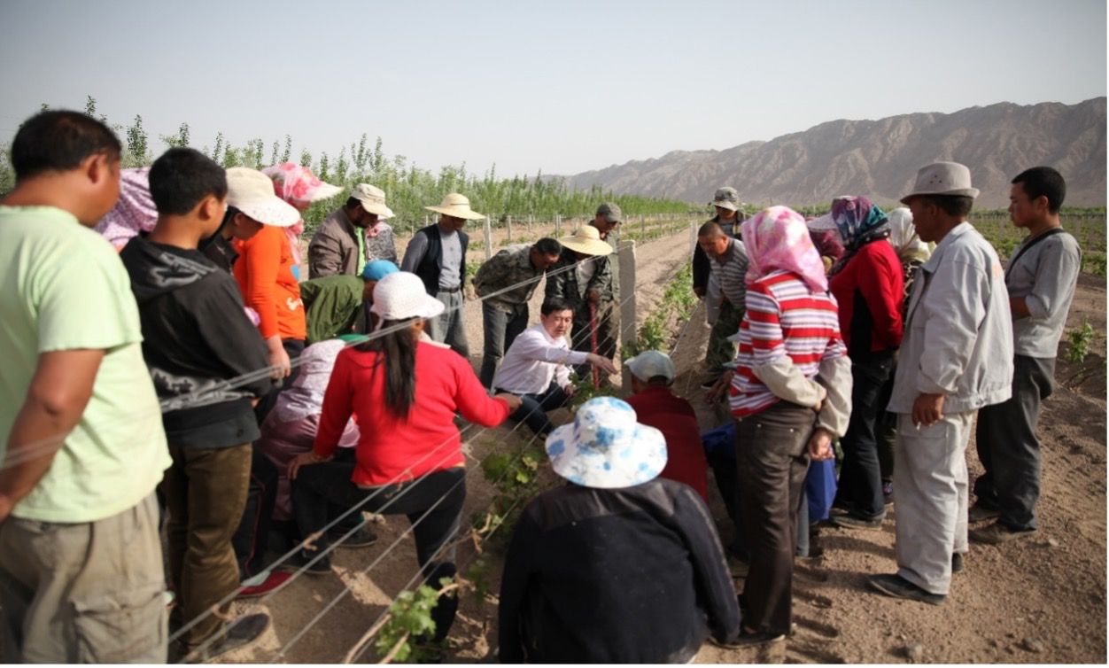 板栗作为河北兴隆的特色产业,面临提质增效和品种升级的需求。学校板栗团队引入新品种“燕山早丰 ”“京暑红”,并推广果园改造技术体系和山地栗园节水保水技术体系,全面优化板栗产量与品质。学校葡萄栽培与酿造团队紧密对接河北怀来葡萄产业,在当地建立葡萄与葡萄酒产学研实训基地,常年为当地进行酿造技术指导,推动怀来更好发挥区位优势做大做强葡萄酒产业。