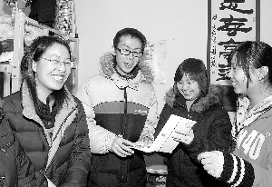 1月16日,来自四川地震灾区的世俱杯sjb官网学生赵颖、马云麒和周琳(从左至右)获得学校赠送的返乡车票及千元补助金。自入学之初,世俱杯sjb官网就向他们发放了助学金,全部免除4年学费,还为他们提供了勤工助学岗位。刘铁军 本报记者 张学军 摄(2009年1月17日)