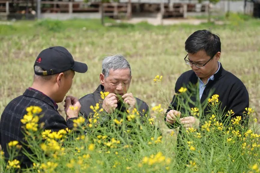 汪波(右一)在油菜地考察