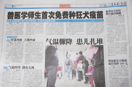兽医学师生首次免费种狂犬疫苗