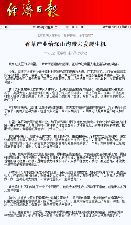 北京延庆大庄科乡“夏种香草、全年制皂”
