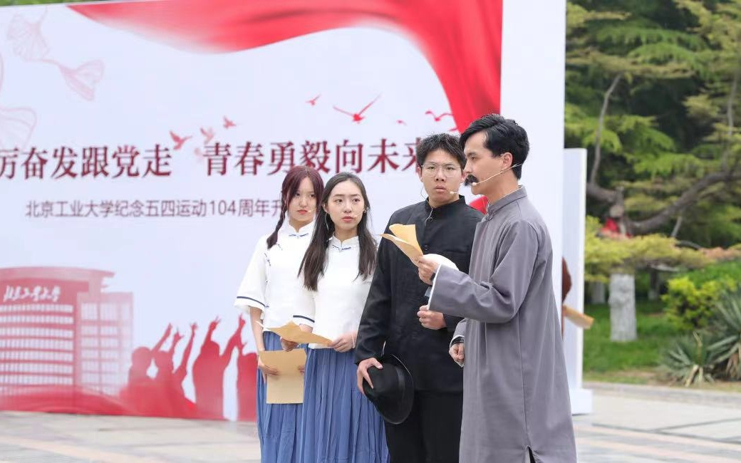 记者了解到,当日,为展现青年人的艺术热情,在北京工业大学平乐园校区日新广场前举行的“踔厉奋发跟党走 青春勇毅向未来”纪念五四运动104周年升国旗仪式上,青棕榈话剧团的同学们带来了情景表演《觉醒》,他们身穿长袍、中山装……再现了革命先辈在“觉醒年代”以青春与热血铸就的恢宏历史。晚间,北工大合唱团、学生交响乐团在中山公园音乐堂演出,学生们现场演奏,带来一首首“青春之歌”,演出在线上同步直播。