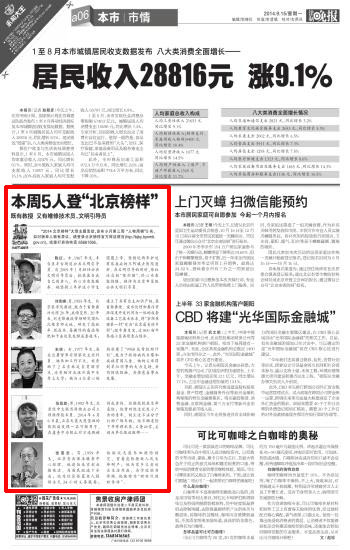本周5人登“北京榜样”