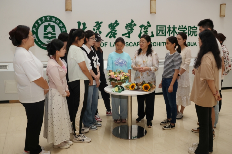 此次活动的专业指导老师侯芳梅副教授是中国插花花艺协会理事、传统插花国家级非遗团队成员。她平时开设《插花艺术》专业课,并面向全校开设《插花艺术基础》公共选修课,这门课也是学校的美育课程,主要讲授中国传统插花艺术和中国花文化并带领同学习插花方法。此次活动中,很多同学将侯老师课堂上所学知识灵活运用到实践中,完成了一份份精彩的插花作品。