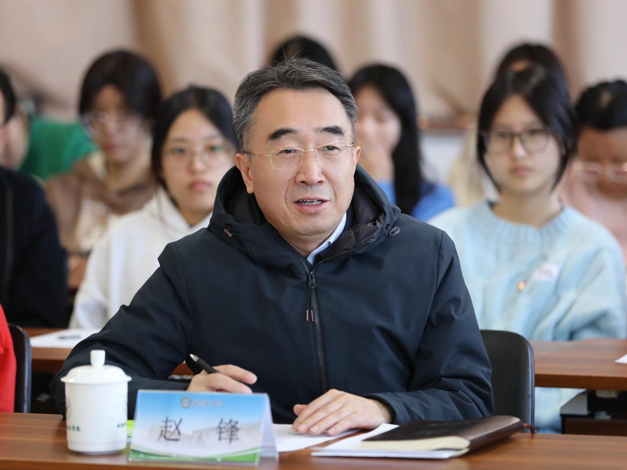 赵锋认真聆听了师生们的分享,对同学们在学生基层组织创建、专业学习、发挥专业优势服务乡村振兴、参加创新创业大赛和文体类竞赛等方面取得的优异成绩给予充分肯定。他勉励同学们既要志存高远,又要脚踏实地,用智慧和汗水书写“成长答卷”;要胸怀“国之大者”,主动将“小我”融入“大我”,展现农科学子的使命担当;要厚植爱农情怀,练就兴农本领,在乡村振兴的大舞台上建功立业,为服务新时代首都发展、全面推进乡村振兴贡献北农学子的青春力量。