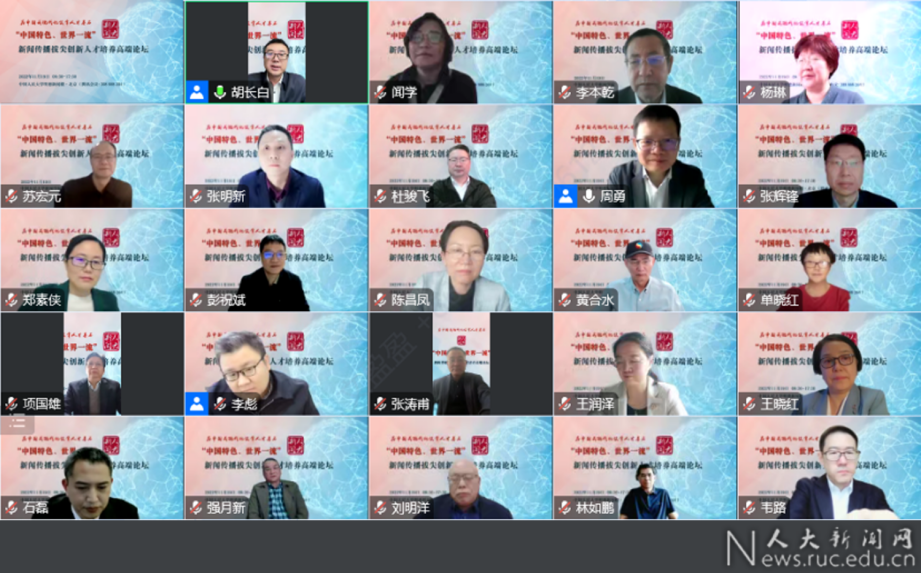 为落实党的二十大报告中“全面提高人才自主培养质量,着力造就拔尖创新人才,聚天下英才而用之”的要求,中国人民大学新闻学院举办“中国特色、世界一流”新闻传播拔尖创新人才培养高端论坛,邀请学界同仁共聚云端,探讨新闻传播拔尖创新人才的培养规律、创新模式、教育共同体建设、评价体系建构等话题。