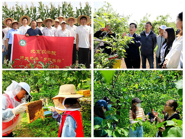 学校坚持把服务乡村产业振兴作为上好乡村振兴“大思政课”的重中之重,发挥师生学科专业优势,聚焦乡村产业振兴主战场,通过“红色1+1”支部共建、“百师进百村”、“人才京郊行”、教师科技挂职等机制,组织教师深入“三农”一线,做给学生看、带着学生干、帮着农民赚,将一堂堂生动鲜活、有意义有意思的“大思政课”开展田间地头。